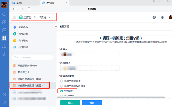 访问企业微信-表单流程-IT流程-IT资源申请流程(集团)